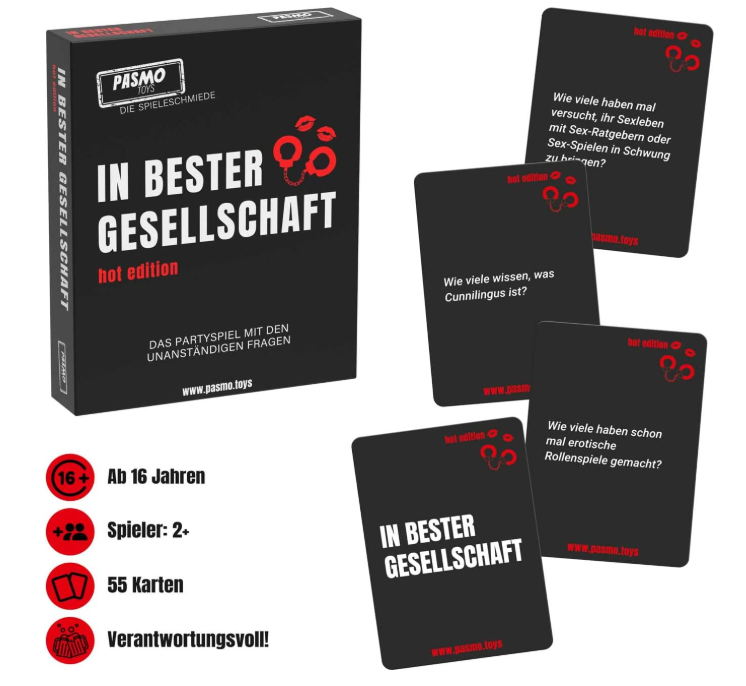 In bester Gesellschaft – Hot Edition ist ein freches, unterhaltsames und überraschend verbindendes Partyspiel, das einen Abend sofort auflockert. Es eignet sich hervorragend für Runden, die Spaß an Humor, Offenheit und ein bisschen Mut haben. Keine Strategie, keine komplizierten Regeln – einfach loslegen, lachen und sich selbst nicht zu ernst nehmen. Es macht nicht jeden glücklich, aber in der richtigen Runde wird es garantiert zum Highlight.