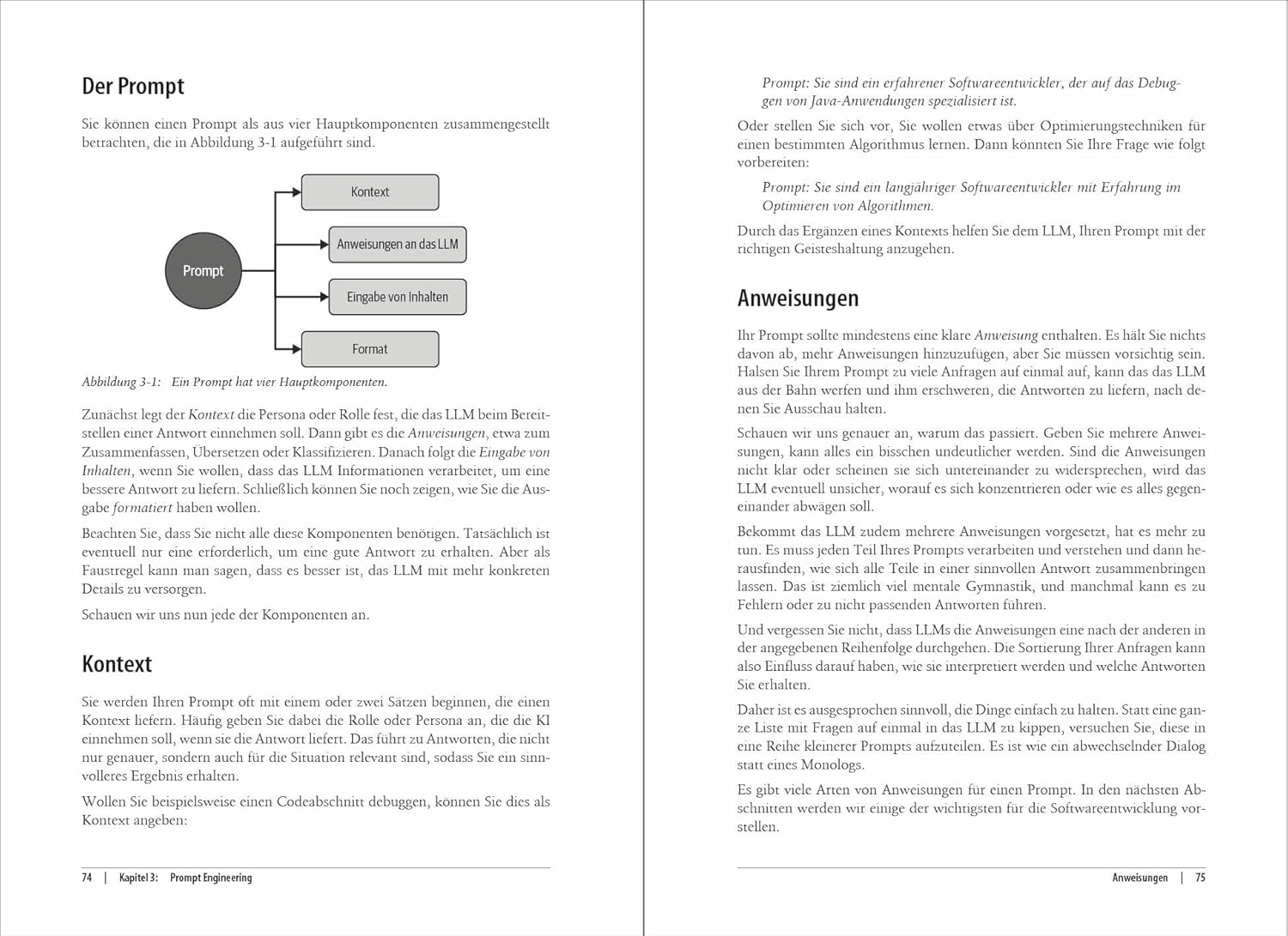 Überraschend viel Aufmerksamkeit widmet das Buch den Aufgaben jenseits des Schreibens von Code. Es zeigt, wie KI heute bei Planung, Requirements, Code-Reviews, Fehleranalyse oder Testfällen eingesetzt werden kann. Besonders das Kapitel über Debugging ist ein Highlight: Die gezeigten Strategien wirken wie ein Turbo für Entwickler, die sich schon einmal stundenlang im eigenen Code-Dschungel verirrt haben.