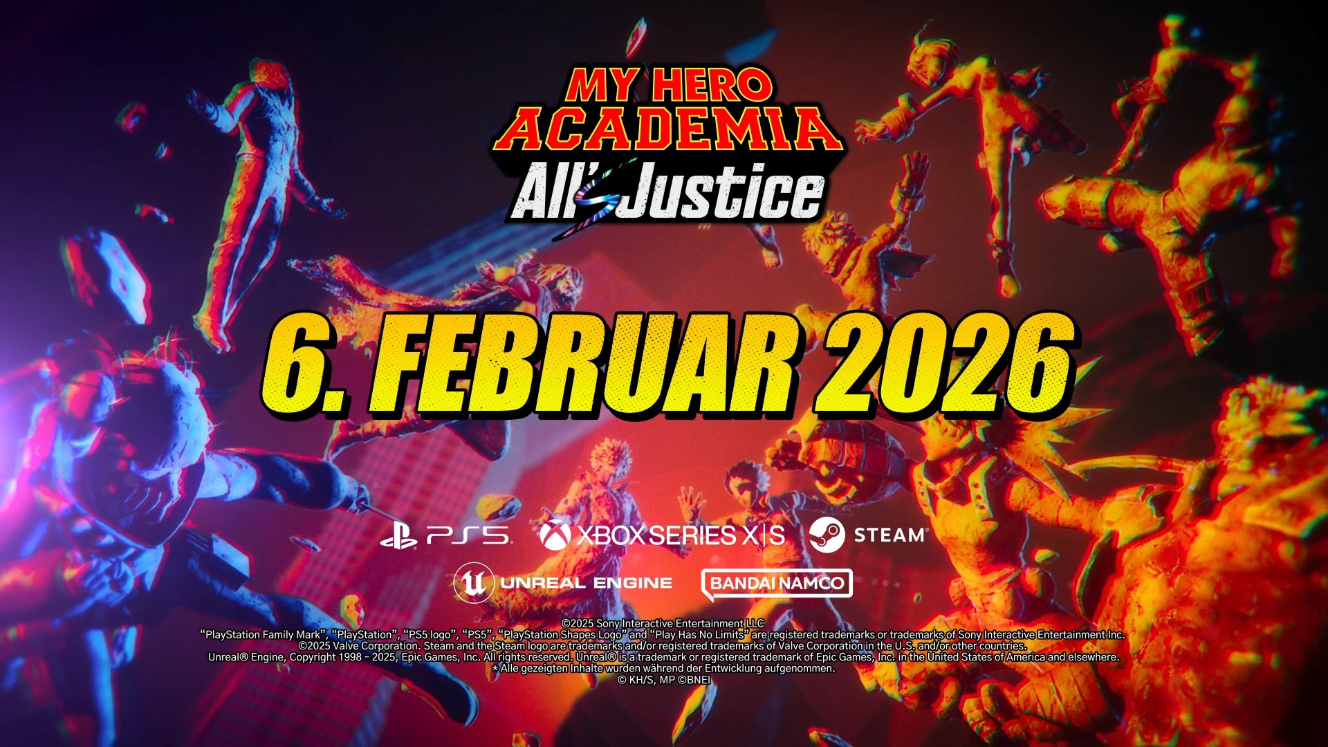 Fans von My Hero Academia dürfen sich auf einen actiongeladenen Jahresstart 2026 freuen: Am 6. Februar erscheint mit My Hero Academia: All’s Justice ein 3D-Arena-Kampfspiel, das den Höhepunkt des finalen Story-Arcs der beliebten Anime-Serie ins Videospiel überträgt. Ab sofort ist der Titel in den Editionen Standard, Deluxe und Ultimate für PlayStation 5 , Xbox Series X|S und PC (Steam) vorbestellbar.